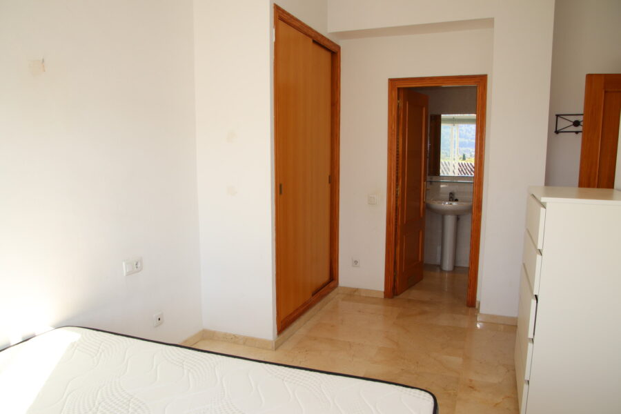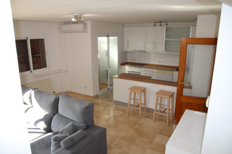 This magnificent duplex is available for rent. The ground floor features an open-plan kitchen/living/dining room with air conditioning, a utility room, a guest toilet, and a balcony with lovely views. The upper floor comprises three bedrooms and two full bathrooms (one en suite). The property also includes a parking space, storage room, and access to a communal garden with a swimming pool.