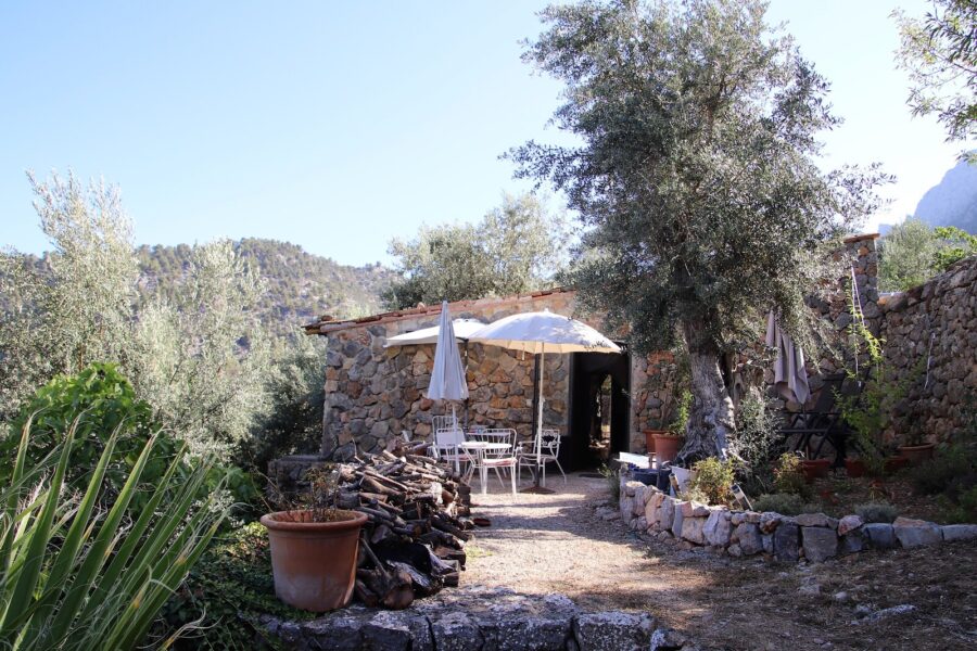This beautiful olive grove is located in a beautiful area surrounded by mountains with fantastic views and is the perfect place to relax. It has an stone house distributed in a cozy living-dining room with white beams and a wood stove, an open plan kitchen, a room with wooden beams and a stone wall, and a bathroom with shower. The property works with solar panels and a gas boiler and has a small pool where you can cool off on summer days enjoying the magnificent landscape of the Serra de Tramuntana. Access to the property is by car, through a rural road just 10 minutes from the town. Perfect for those looking for a refuge to enjoy the tranquility